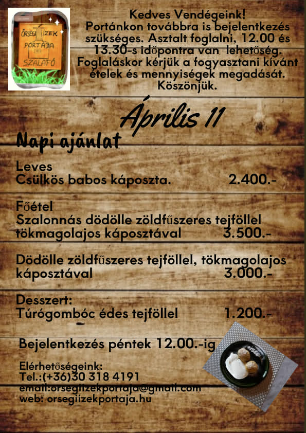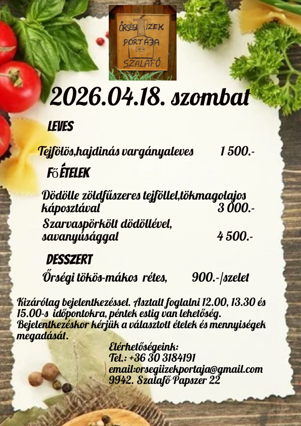 FOGLALÁSNÁL KÉRJÜK ADJÁK MEG A KÉRT ÉTELEKET!!!
